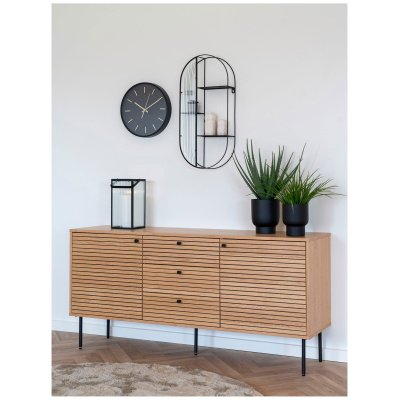 Komoda Dalby, su stiklo durelėmis, 3 stalčiai (juoda)