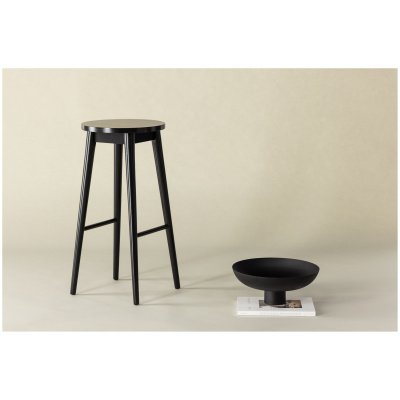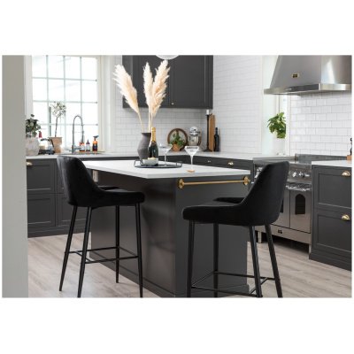 I_Oregon baro kėdė, PU retro brendžio spalvos (230920-1B), pagrindas – juoda matinė šiurkšti miltelinė plieno danga, su kreminės spalvos siūlėmis, pakoju ir zigzaginiu siuvinėjimu.
